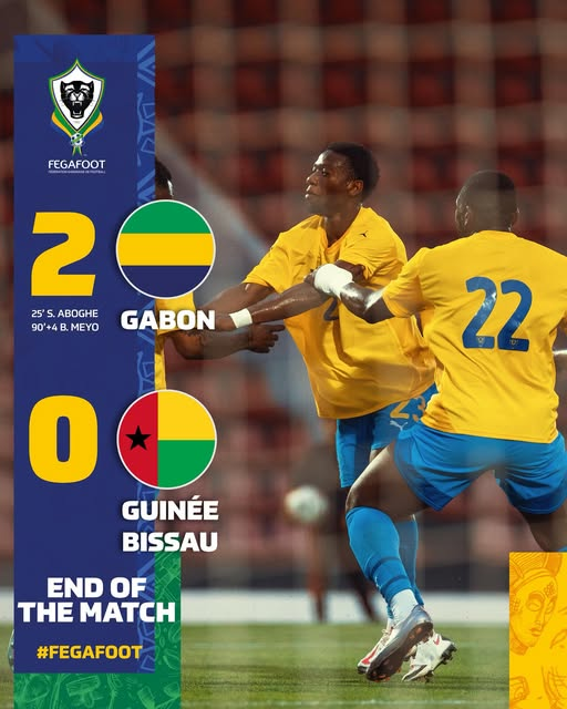 La rencontre s’est déroulée au stade El Bachir de Mohammedia, au Maroc, qui sert de base régulière à la sélection gabonaise. Bien en place dès les premières minutes, les Panthères ont dominé le début de partie avec des transitions rapides qui ont mis en difficulté la défense bissau-guinéenne. À la 25e minute, Shorla Aboghe concrétise cette domination en ouvrant le score. Le Gabon conserve cet avantage jusqu’à la pause.