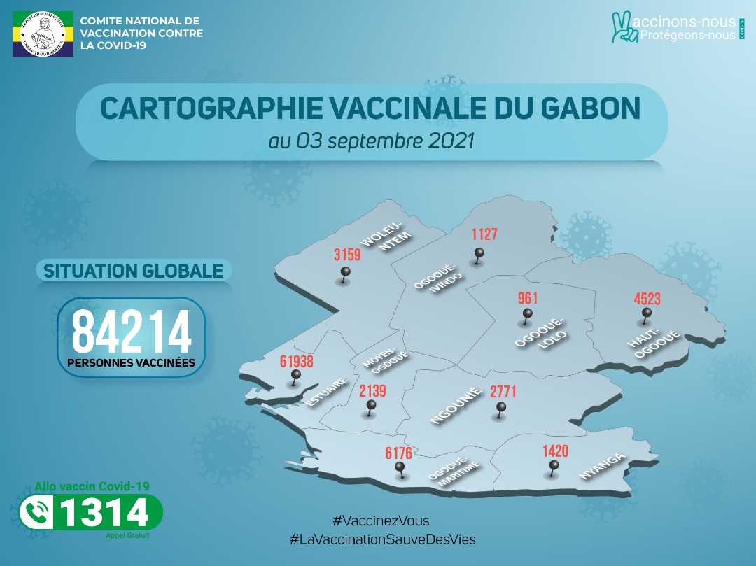 Coronavirus au Gabon : situation vaccinale au 3 septembre 2021 Photo : Droits réservés/GabomaInfo
